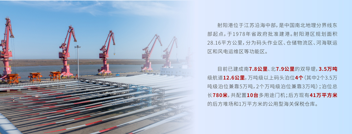 射陽(yáng)港區(qū)將持續(xù)延伸“港口+物流”服務(wù)鏈條,探索“港口+產(chǎn)業(yè)鏈”、“港口+供應(yīng)鏈”,推動(dòng)“三鏈融合”在風(fēng)電全生命周期體系中發(fā)揮主導(dǎo)作用,致力打造具有全球影響力的風(fēng)電產(chǎn)業(yè)特色港。