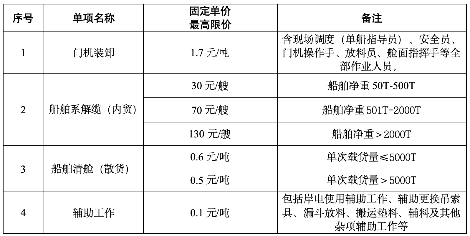 2、招標(biāo)內(nèi)容:萬(wàn)噸級(jí)通用碼頭4#泊位裝卸作業(yè)、船舶清艙業(yè)務(wù)外包服務(wù)包括(包括但不限于):射陽(yáng)港4#通用泊位的裝卸搬運(yùn):含現(xiàn)場(chǎng)調(diào)度(單船指導(dǎo)員)、安全員、門機(jī)操作手、放料員、艙面指揮手等全部作業(yè)人員(包括招標(biāo)人提供:2臺(tái)門機(jī)、2臺(tái)漏斗;投標(biāo)人自備:裝載機(jī)、運(yùn)輸車輛、通勤車輛等設(shè)備操作);輔助工作:岸電使用輔助工作、輔助更換吊索具、漏斗放料、搬運(yùn)墊料、輔料及其它雜項(xiàng)輔助工作;船舶清艙:含機(jī)械、人工入艙清理(含指揮)、道口至碼頭面區(qū)域的清理工作;船舶系解纜(船舶解、系纜及其輔助工作)等,詳見招標(biāo)需求。招標(biāo)人保留對(duì)招標(biāo)范圍進(jìn)行調(diào)整的權(quán)利。
