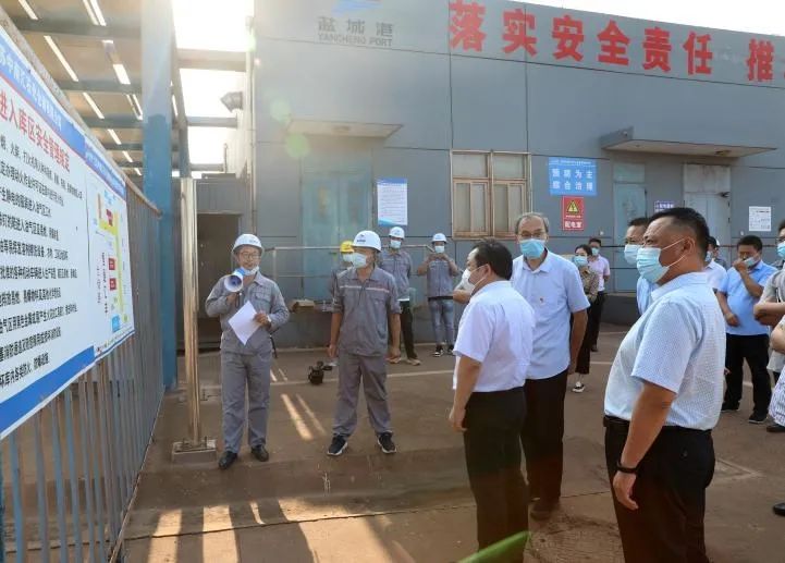 周正雄一行實(shí)地察看了中南匯石化倉儲(chǔ)公司、大豐港區(qū)集裝箱碼頭,詳細(xì)了解各類項(xiàng)目安全生產(chǎn)和疫情防控工作情況。