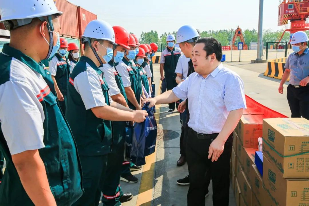 連日來(lái),氣溫節(jié)節(jié)攀升、熱浪襲人。在亭湖港區(qū),周正雄和堅(jiān)守崗位的工作人員一一握手,感謝大家的默默奉獻(xiàn),為保障港口安全平穩(wěn)運(yùn)行而付出的努力,并向他們送上慰問(wèn)品。他說(shuō),港口作為交通運(yùn)輸行業(yè)的重要組成部分,既是能源消耗和碳排放的重要來(lái)源,也是推動(dòng)綠色發(fā)展、實(shí)現(xiàn)碳中和的關(guān)鍵領(lǐng)域。要堅(jiān)持貫徹落實(shí)集團(tuán)“十四五”關(guān)于綠色生態(tài)港建設(shè)的部署要求,以系統(tǒng)推進(jìn)綠色生態(tài)港建設(shè)為重點(diǎn),全面提升港口基礎(chǔ)設(shè)施、裝備和運(yùn)輸組織的綠色發(fā)展水平,努力做到“低碳排放”乃至“零碳排放”,著力推動(dòng)港口整體綠色轉(zhuǎn)型,全力推進(jìn)“綠色、生態(tài)、智慧、平安、美麗”港口建設(shè),助力鹽城港集團(tuán)實(shí)現(xiàn)更加健康可持續(xù)發(fā)展。與此同時(shí),要始終堅(jiān)持“以人為本”,時(shí)刻把一線職工的健康安全放在首位,結(jié)合高溫天氣碼頭施工作業(yè)要求,抓嚴(yán)抓細(xì)防暑降溫各項(xiàng)工作,全力改善職工夏季生產(chǎn)生活條件和工作環(huán)境,及時(shí)對(duì)防暑降溫各類措施落實(shí)情況進(jìn)行再監(jiān)督再檢查,切實(shí)保障職工健康權(quán)益,確保防暑降溫各項(xiàng)工作有效落實(shí)到位。一線員工要進(jìn)一步提高安全意識(shí),積極配合做好防暑降溫工作,在全力保障健康安全的前提下,合理安排作息時(shí)間,繼續(xù)保持斗志昂揚(yáng)的精神面貌,發(fā)揚(yáng)不畏艱苦、勇于奉獻(xiàn)的精神,在高溫期間有序開(kāi)展各項(xiàng)工作,努力在平凡的崗位上做出不平凡的成績(jī),為集團(tuán)高質(zhì)量融合發(fā)展積蓄更多動(dòng)能。