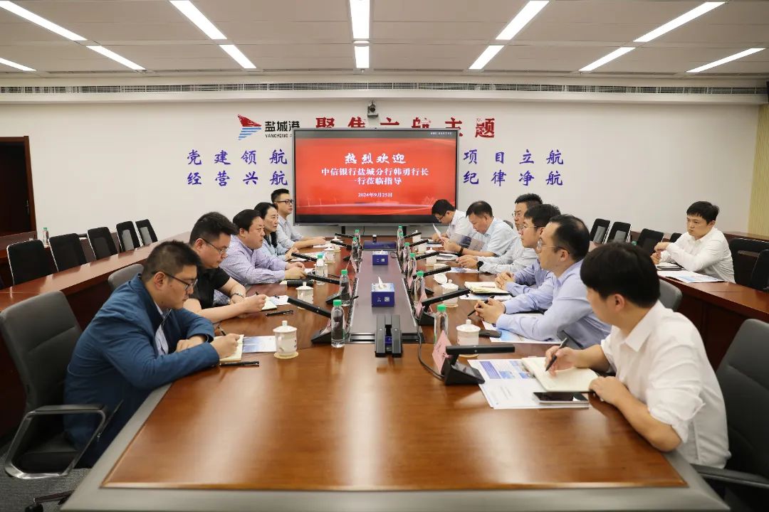 周正雄對韓勇一行的到來表示歡迎,對中信銀行鹽城分行在鹽城港發(fā)展過程中給予的關心和支持表示感謝,并介紹了鹽城港相關情況。他說,沿海發(fā)展是鹽城發(fā)展的重要增長極,港口發(fā)展是海洋經濟發(fā)展的重要組成部分。集團自成立以來,統(tǒng)籌抓好基礎設施建設、資產資源調優(yōu)、生產經營各項工作,多項經營指標取得突破,在全國沿海港口中保持爭先進位。當前,集團積極策應“水運江蘇”建設,緊抓淮河入海水道改航道及鐵路支線開通等重大機遇,聚焦服務產業(yè)功能配套,加快航道、碼頭等10類能級提升項目建設,全力打造“公鐵河海”多式聯(lián)運體系。同時,加快推進淮河流域布點,積極構建淮河沿線和黃河故道沿線港口“朋友圈”,形成“港口聯(lián)盟”,全力培育鹽城港未來的喂給港,為鹽城港邁入高質量發(fā)展“黃金期”奠定堅實基礎。希望中信銀行鹽城分行一如既往地關心支持鹽城港發(fā)展,在“港口+”業(yè)務、資本運營等方面為鹽城港提供更多支持,進一步找準合作的切入點,開發(fā)更多適合港口的金融產品,為鹽城港的發(fā)展提供強有力的金融支撐。