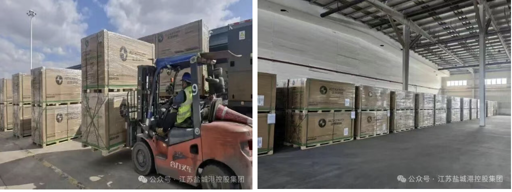10月23日,鹽城港保稅物流中心卡口處機器轟鳴,數十輛滿載光伏組件的卡車依次駛入,經卡口系統核驗后完成通關流程,順利進入保稅物流中心存儲。此批貨物來自正泰光伏新能源企業,首批業務共計40TEU,貨值約560萬元,預計可為企業實現提前退稅約50萬元;后續將有數百TEU貨物通過“保稅倉儲+出口退稅”模式靈活調配至海外市場。