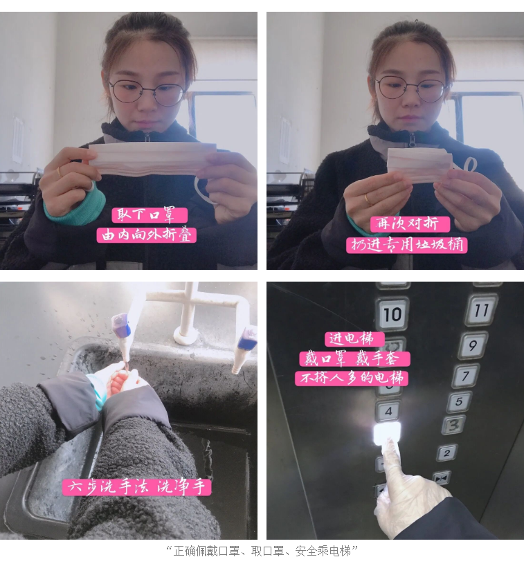 采用“敲門行動(dòng)”的方式在單位核實(shí)各職工核酸檢測信息、了解家庭人員情況、外市人員回豐情況,對(duì)重點(diǎn)人員嚴(yán)格執(zhí)行“7+7”的隔離要求。圍繞“近期公共場所人群佩戴口罩覆蓋率達(dá)95%、今后逐步提升”的目標(biāo),大豐港區(qū)要求各級(jí)子(控)公司所有職工上班佩戴口罩,并確保有人動(dòng)員引導(dǎo)、有人提醒監(jiān)督。為了讓每個(gè)人可以正確的佩戴口罩,集團(tuán)職工還自制了“正確佩戴口罩、取口罩、安全乘電梯”的小步驟供大家學(xué)習(xí)。