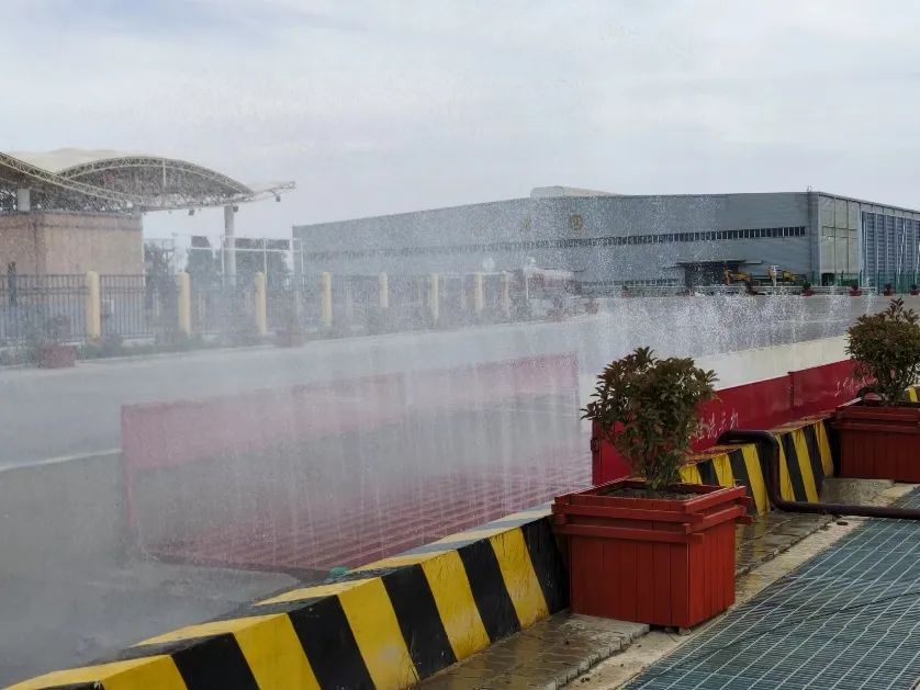 經過一個多月的聯調聯試和完善,5月31日,響水港區港務公司車輛噴淋抑塵裝置正式投入使用。該裝置位于公司主干道緯一路東側,能為所有出港車輛提供抑塵服務,且自動智能化程度高,采用高靈敏度的感應接近開關,車輛駛入自動噴淋通道,系統感應后會自動啟動相應的噴淋裝置,無需人工進行額外干預。同時,為確保噴淋效果,該抑塵裝置采用了2臺1.5KW的高功率潛水泵提供水源動力,噴灑裝置采用14*10孔洞噴灑,提供了1分鐘的延長噴灑時間,確保了噴灑覆蓋面和噴灑均衡度,滿足了車輛裝載貨物后的抑塵需要。