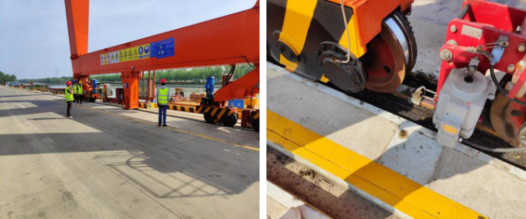 左圖:指揮手指揮門機移動至錨定位置