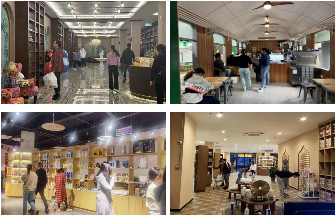 園區(qū)內(nèi)多元業(yè)態(tài)有機(jī)融合,購(gòu)物、文化展示、休閑娛樂(lè)等服務(wù)一應(yīng)俱全,滿(mǎn)足了不同游客的個(gè)性化需求。特別是以國(guó)內(nèi)外特色為主題的展銷(xiāo)館,如俄羅斯館、大洋洲館、歐洲館等,讓游客領(lǐng)略各地文化精粹,輕松實(shí)現(xiàn)全球購(gòu)。同時(shí),港泊面館、港泊雅苑、港泊韓膳閣、港泊中歐班列體驗(yàn)館和港泊韓式風(fēng)味體驗(yàn)店等特色餐飲也為游客提供了地道美食,備受游客青睞。