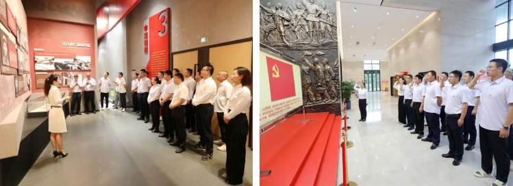 “我志愿加入中國共產(chǎn)黨,擁護(hù)黨的綱領(lǐng),遵守黨的章程,履行黨員義務(wù),執(zhí)行黨的決定,嚴(yán)守黨的紀(jì)律……”6月29日,港灣建設(shè)集團(tuán)與天津深基公司鹽城項(xiàng)目黨支部的黨員共同佩戴黨徽、舉起右拳,在鹽都革命陳列館內(nèi)重溫入黨誓詞,用洪亮的聲音、激昂的語氣,表達(dá)了牢記初心使命,踐行為共產(chǎn)主義事業(yè)奮斗終身的決心和永葆共產(chǎn)黨員政治本色的信心。