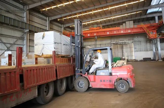 叉車穿梭于鋼鐵貨垛之間