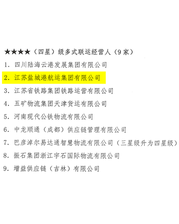 近日,中國集裝箱行業(yè)協(xié)會發(fā)布第五批多式聯(lián)運經(jīng)營人等級評估結(jié)果,歷經(jīng)資料審查、專家評審等多環(huán)節(jié)嚴(yán)格考核,江蘇鹽城港航運集團有限公司(以下簡稱“航運集團”)憑借卓越的綜合實力和服務(wù)水平,成功獲評“四星級多式聯(lián)運經(jīng)營人”稱號。
