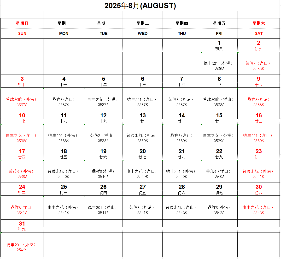 “滬鹽專線”8月船期表已經(jīng)新鮮出爐!