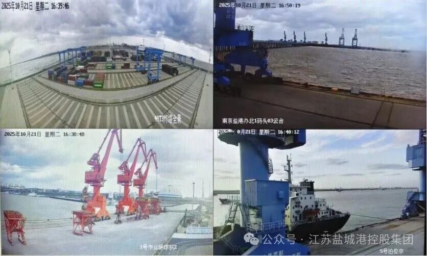 各港區因地制宜推進技術創新,保稅物流中心引入智能語音預警系統,基于作業動態與風險等級實時播報安全提示,彌補人工監管盲區;資產公司推廣智能安全帽系統,實現現場視頻實時傳輸、遠程通話,破解“現場—后臺”信息梗阻;射陽港區、濱海港區試點“智能穿戴設備”,實時監測作業人員軌跡;港灣建設集團、農業集團運用無人機巡檢覆蓋作業區域;阜寧鐵路分公司采用“每日影像巡查機制”,智慧港口公司則通過AI智能識別技術,實現安全帽規范佩戴、作業周界報警等風險場景實時監控。截至目前,集團已建成覆蓋全港區作業面、倉儲區、主干道的2000余路高清視頻監控網絡,安全環保部每日不定時視頻抽檢,及時糾正違規作業行為,技防效能持續凸顯。