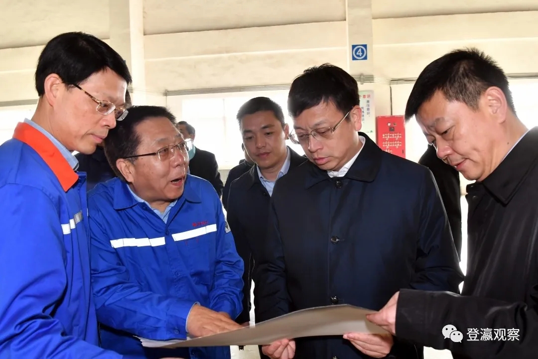 ▲市長曹路寶察看金風(fēng)科技整機(jī)總裝廠和16MW傳動實(shí)驗(yàn)室